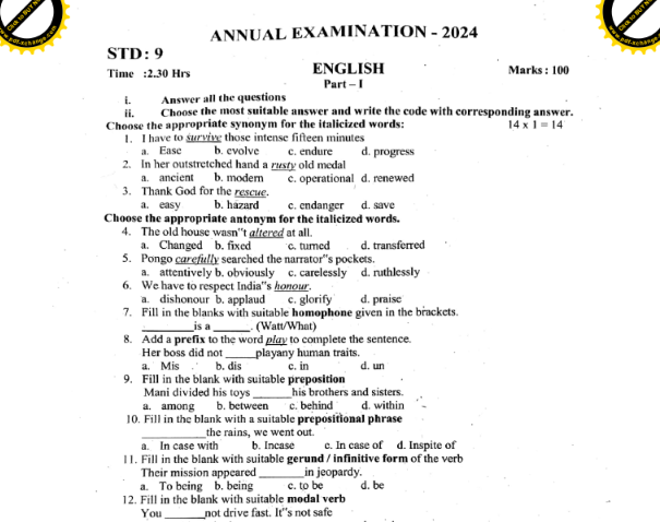 9th English Annual Exam Original Question Paper-2 2024 English Medium PDF Download. பதிவிறக்கம் செய்ய கீழே கொடுக்கப்பட்டுள்ள லிங்கை கிளிக் செய்யவும்Please Click Below Link to Download from Our Website free.